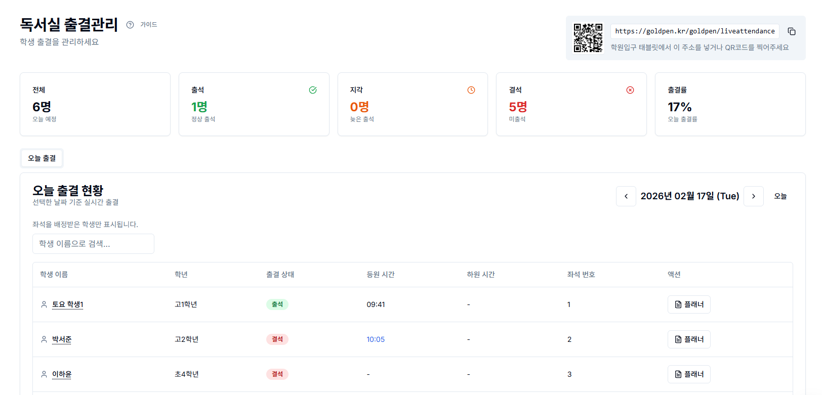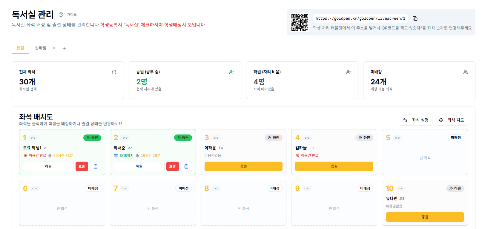 독서실에서 가장 기본이 되는 것은 출결 관리입니다.