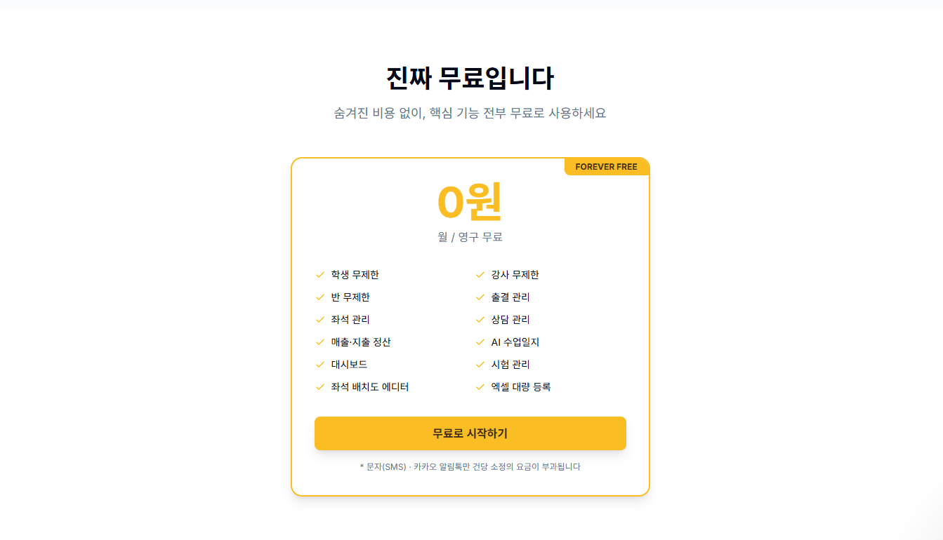 처음부터 모든 기능을 완벽히 세팅하지 않아도 되기 때문에, 현재 운영 상황에 맞춰 단계적으로 적용해 보실 수 있다는 점도 장점인데요. 아직 데이터가 많지 않으시다면 데모버전을 먼저 경험해 보셔도 좋습니다. 실제 화면과 기능을 확인해 보시면, 출결부터 좌석관리, 매출정산까지 하나의 플랫폼에서 어떻게 연결되는지 더 빠르게 이해하실 수 있습니다.