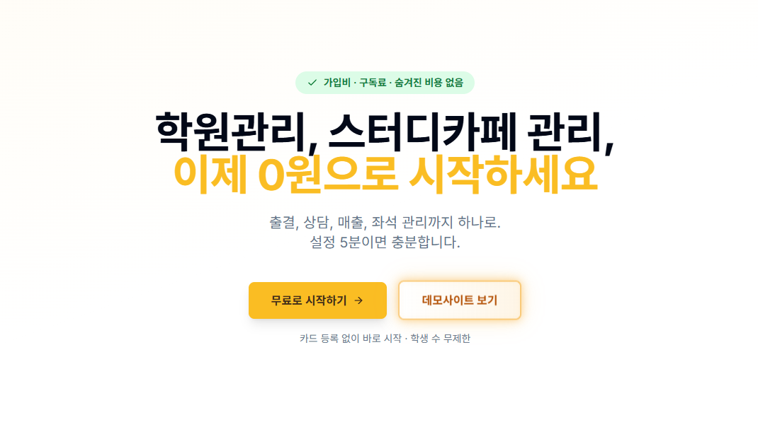 신학기는 새로운 시작입니다. 학생만 새롭게 맞이하는 시기가 아니라, 운영 방식도 함께 점검해볼 수 있는 기회이기도 한데요. 기존 방식을 유지하는 대신, 데이터를 기반으로 움직이는 구조로 한 단계 업그레이드해 보시는 것은 어떠실까요? 지금 시작한 변화는 한 학기, 나아가 한 해의 운영을 더욱 단단하게 만들어 줄 수 있습니다.
